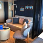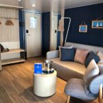 En dos cubiertas aloja a 1.212 pasajeros en un elevado nivel de confort, como se puede apreciar en el amplio reportaje fotográfico que acompaña. Hay varias categorías de camarotes y en todas ellas rezuma el espíritu nórdico. Los salones tienen diferentes ambientes según las preferencias del pasaje y el diseño finlandés está presente en todos los rincones del buque, incluida la sauna. Existen opciones “up grade” que elevan un poco más la ya apreciable calidad de los servicios a bordo. Los transportistas hay un salón específico llamado “Cargo” con una amplia carta y la ausencia estricta de alcohol. La terraza a popa tiene una gran amplitud y un equipamiento muy atractivo, lo mismo que la terraza para mascotas, en una cubierta inferior, que ocupa un espacio de banda a banda.