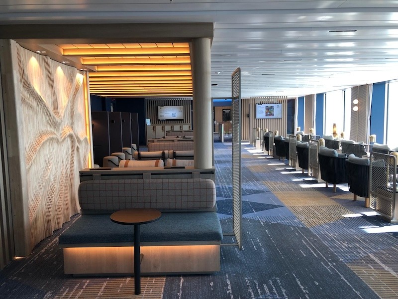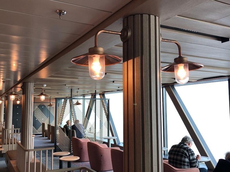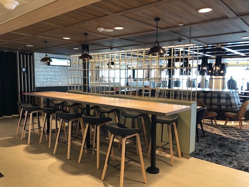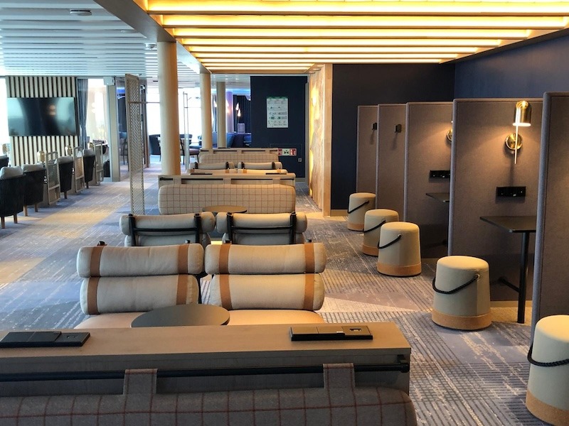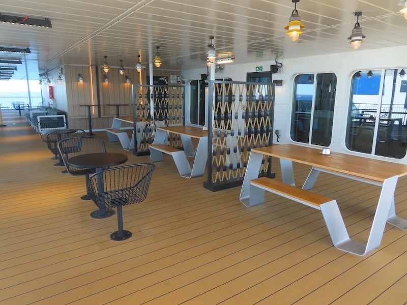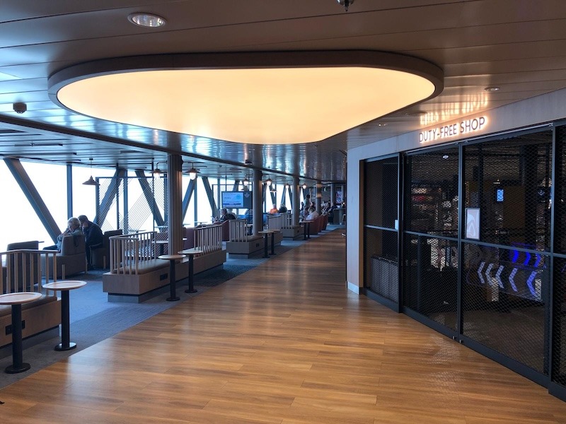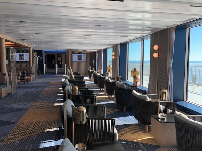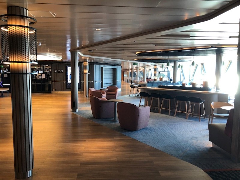 En dos cubiertas aloja a 1.212 pasajeros en un elevado nivel de confort, como se puede apreciar en el amplio reportaje fotográfico que acompaña. Hay varias categorías de camarotes y en todas ellas rezuma el espíritu nórdico. Los salones tienen diferentes ambientes según las preferencias del pasaje y el diseño finlandés está presente en todos los rincones del buque, incluida la sauna. Existen opciones “up grade” que elevan un poco más la ya apreciable calidad de los servicios a bordo. Los transportistas hay un salón específico llamado “Cargo” con una amplia carta y la ausencia estricta de alcohol. La terraza a popa tiene una gran amplitud y un equipamiento muy atractivo, lo mismo que la terraza para mascotas, en una cubierta inferior, que ocupa un espacio de banda a banda.