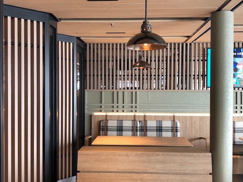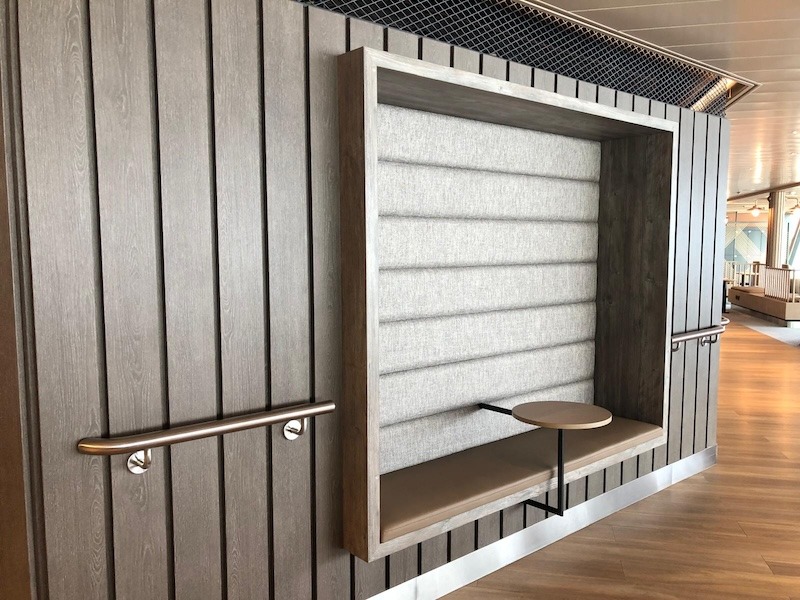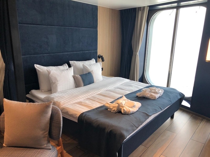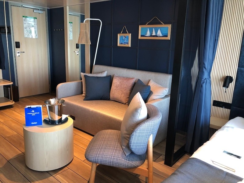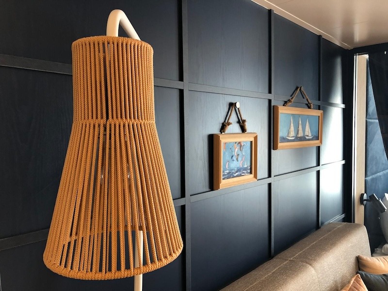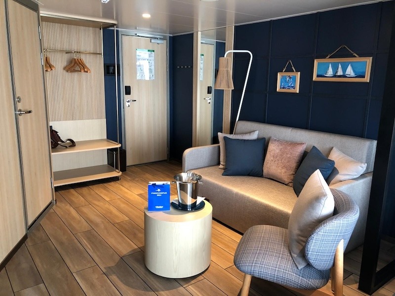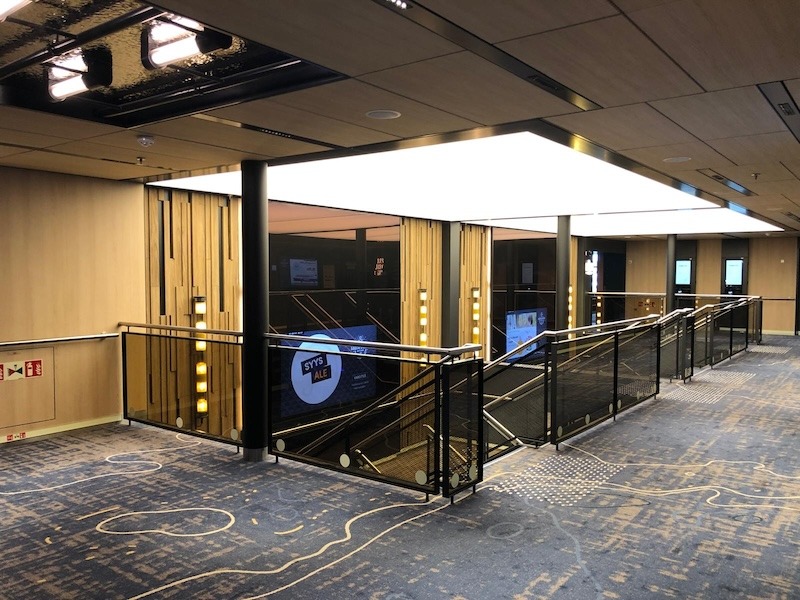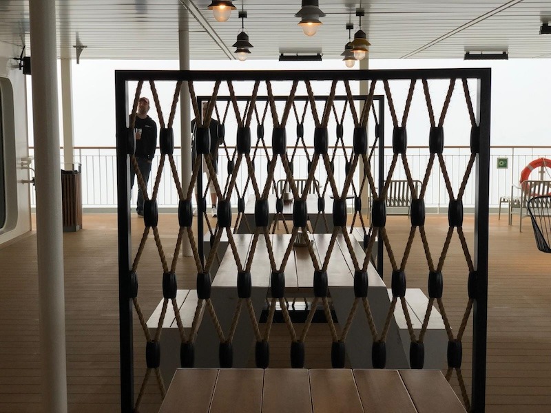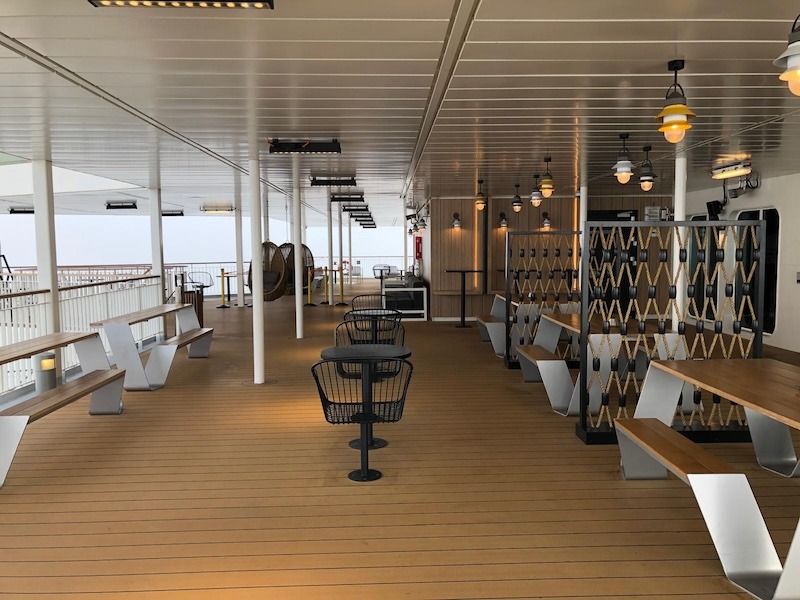 En dos cubiertas aloja a 1.212 pasajeros en un elevado nivel de confort, como se puede apreciar en el amplio reportaje fotográfico que acompaña. Hay varias categorías de camarotes y en todas ellas rezuma el espíritu nórdico. Los salones tienen diferentes ambientes según las preferencias del pasaje y el diseño finlandés está presente en todos los rincones del buque, incluida la sauna. Existen opciones “up grade” que elevan un poco más la ya apreciable calidad de los servicios a bordo. Los transportistas hay un salón específico llamado “Cargo” con una amplia carta y la ausencia estricta de alcohol. La terraza a popa tiene una gran amplitud y un equipamiento muy atractivo, lo mismo que la terraza para mascotas, en una cubierta inferior, que ocupa un espacio de banda a banda.