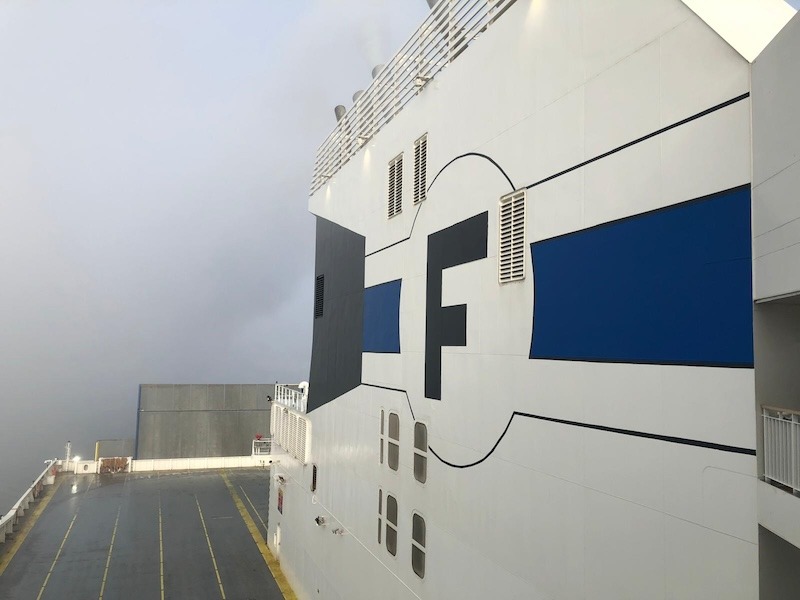 El garaje se distribuye en tres cubiertas que suman 5.190 metros lineales de carga rodada. En el viaje de regreso de Kapellskär a Naantali, el ferry “Finncanopus” regresó lleno de camiones que desembarcaron en un apreciable orden, haciendo caso constante a las indicaciones de la tripulación. Vehículos nuevos todos ellos, silenciosos y de muy bajo nivel de emisiones.