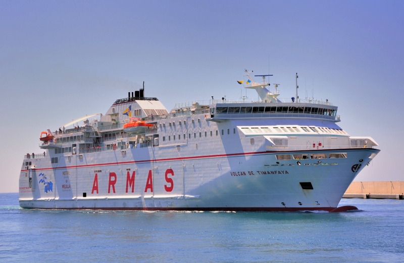El buque “Volcán de Timanfaya”, que es uno de los más antiguos de la flota, se desplazó desde el mar de Alborán para cubrir la baja del “Volcán de Tamasite”, accidentado el pasado 21 de abril cuando se empotró literalmente contra el espaldón del muelle Nelson Mandela en Las Palmas de Gran Canaria, debido a una avería eléctrica. Otro buque de la compañía, “Volcán de Tauce”, sigue en ASTICAN, más tiempo de lo inicialmente previsto, donde también se encuentra el buque accidentado. El averiado “Volcán de Timanfaya” será relevado esta tarde en la línea Las Palmas-Santa Cruz de Tenerife por el buque «Volcán de Tijarafe»