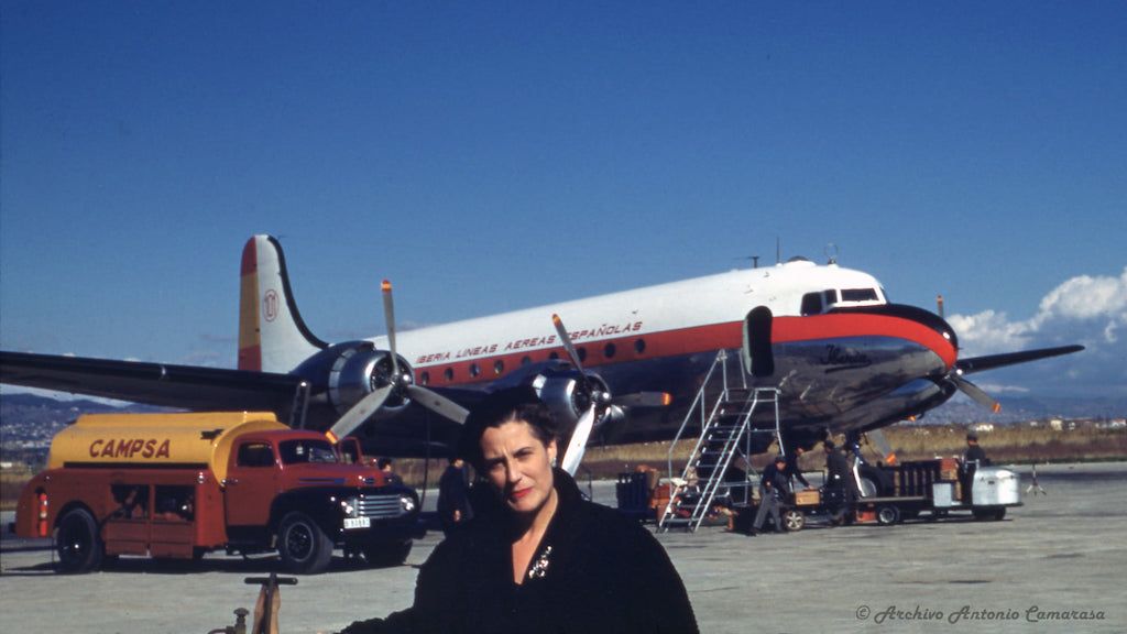 En la fotografía que acompaña aparece la abuela materna de Antonio Camarasa, uno de los mejores fotógrafos de la aviación comercial española, que ha tenido la gentileza de subir esta bonita imagen a su muro de facebook. Además de la elegante dama, vemos un camión cisterna de CAMPSA y el avión Douglas DC-4 matrícula EC-ACD, que fue el primero de este modelo que tuvo Iberia. Entregado el 13 de julio de 1946, el 12 de noviembre de 1966 pasó a formar parte de Spantax.