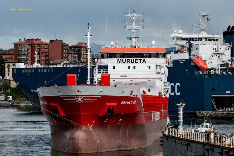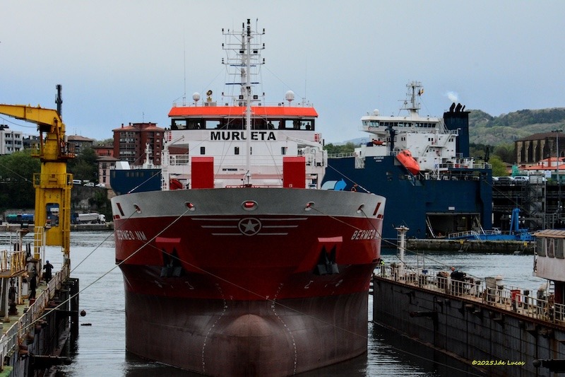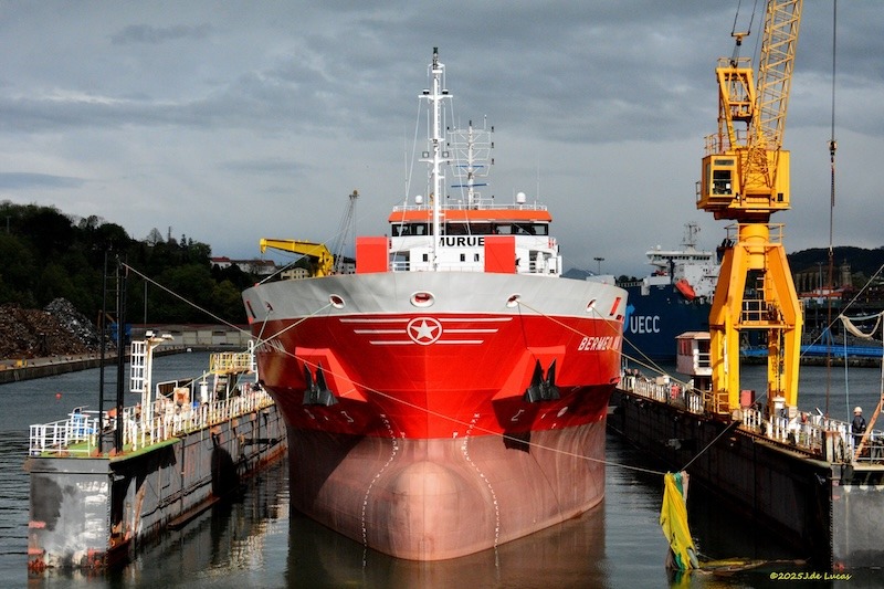 El nuevo buque “Bermeo NM”, abanderado en Portugal, se encuentra desde ayer en el puerto de Pasaia para realizar una varada en el dique flotante de Astilleros Zamakona, donde realizará una serie de trabajos en seco previos a las pruebas de mar oficiales, informa Julián de Lucas.