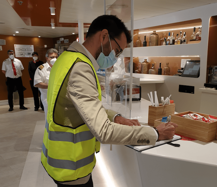 Se trató de un encuentro muy distendido donde pudieron comprobar todos los servicios de que dispone este buque, muy querido y apreciado en la isla como antiguo «Sorolla». Finalmente, el alcalde estampó su firma en el libro de visitas del buque, donde además dejó una bonita dedicatoria a toda la compañía y personal de la naviera en general.