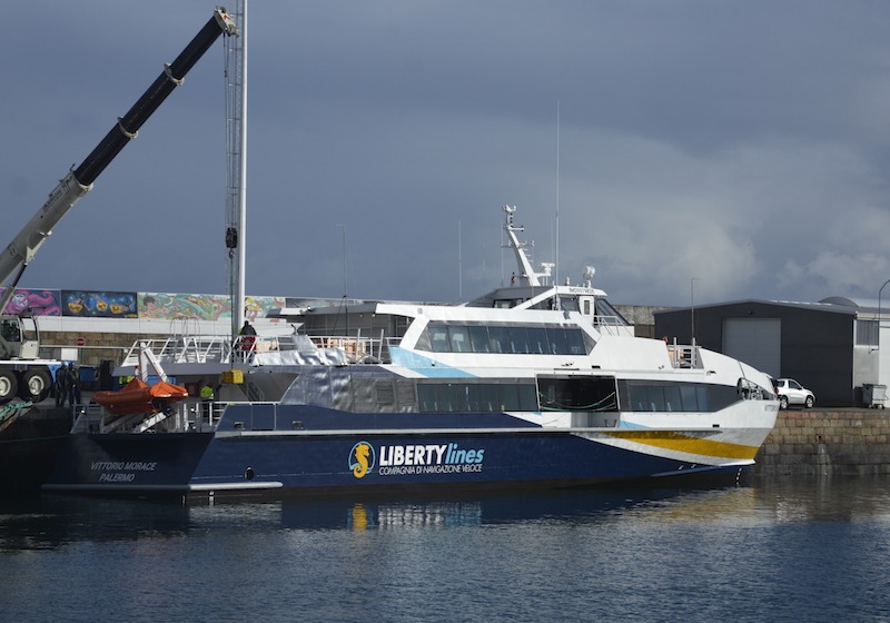 El primero de los nueve buques monocascos híbridos de alta velocidad contratados por la compañía italiana Liberty Lines con el grupo Astilleros Armón, se encuentra a flote desde primera hora de la mañana del pasado lunes 4 de diciembre, en que se procedió a su botadura en el astillero de Burela (Lugo), informa la naviera con sede en Trapani.