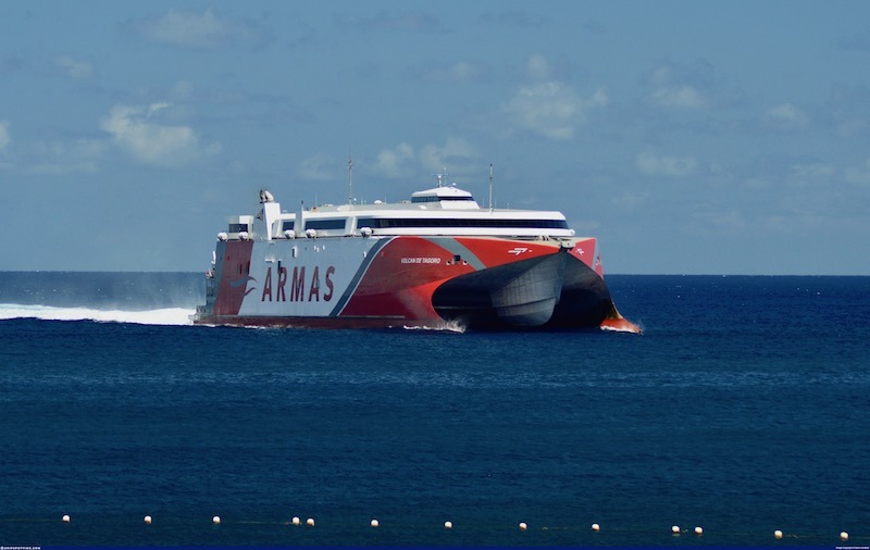 Tras su varada anual en Navantia Cádiz, el catamarán “Volcán de Tagoro” navega rumbo a Las Palmas de Gran Canaria y a comienzos de la próxima semana se reincorporará al “puente marítimo” entre ambas capitales canarias. Más adelante le tocará el turno a su gemelo “Volcán de Taidía”. Mientras tanto, el relevo en el servicio “de capital a capital” está a cargo del catamarán “Villa de Agaete”, que volverá en breve a la línea de Morro Jable.